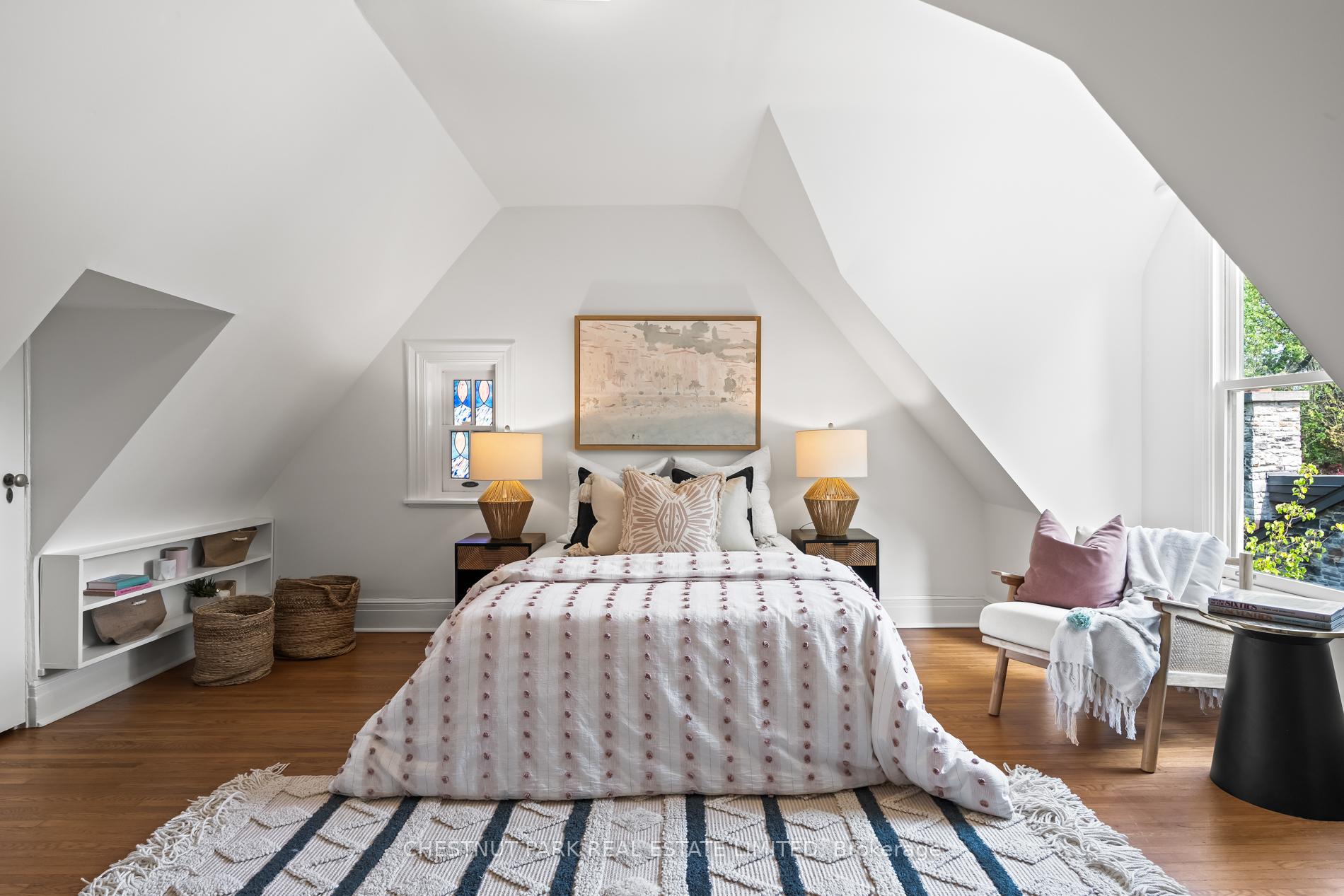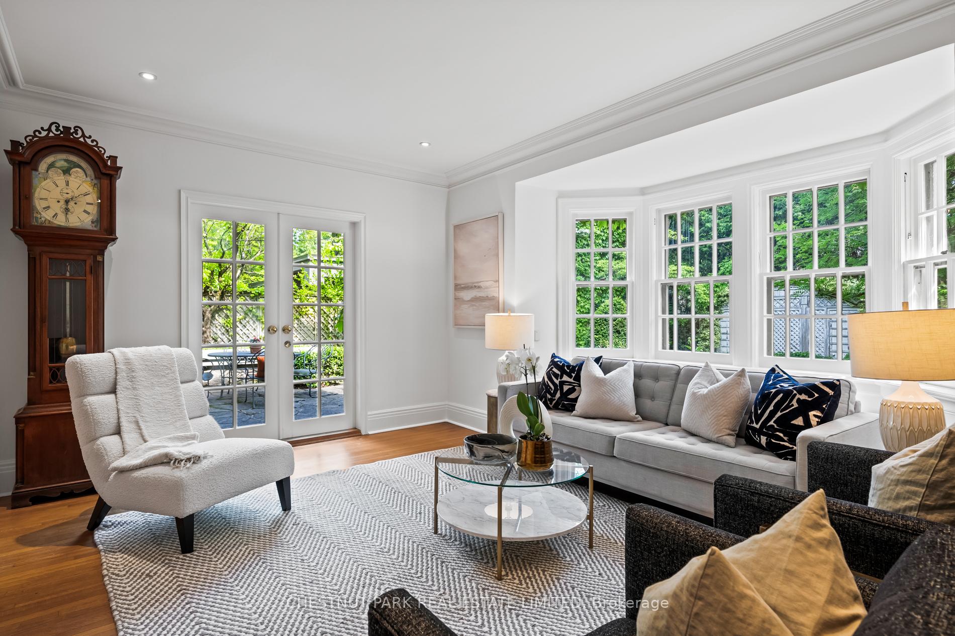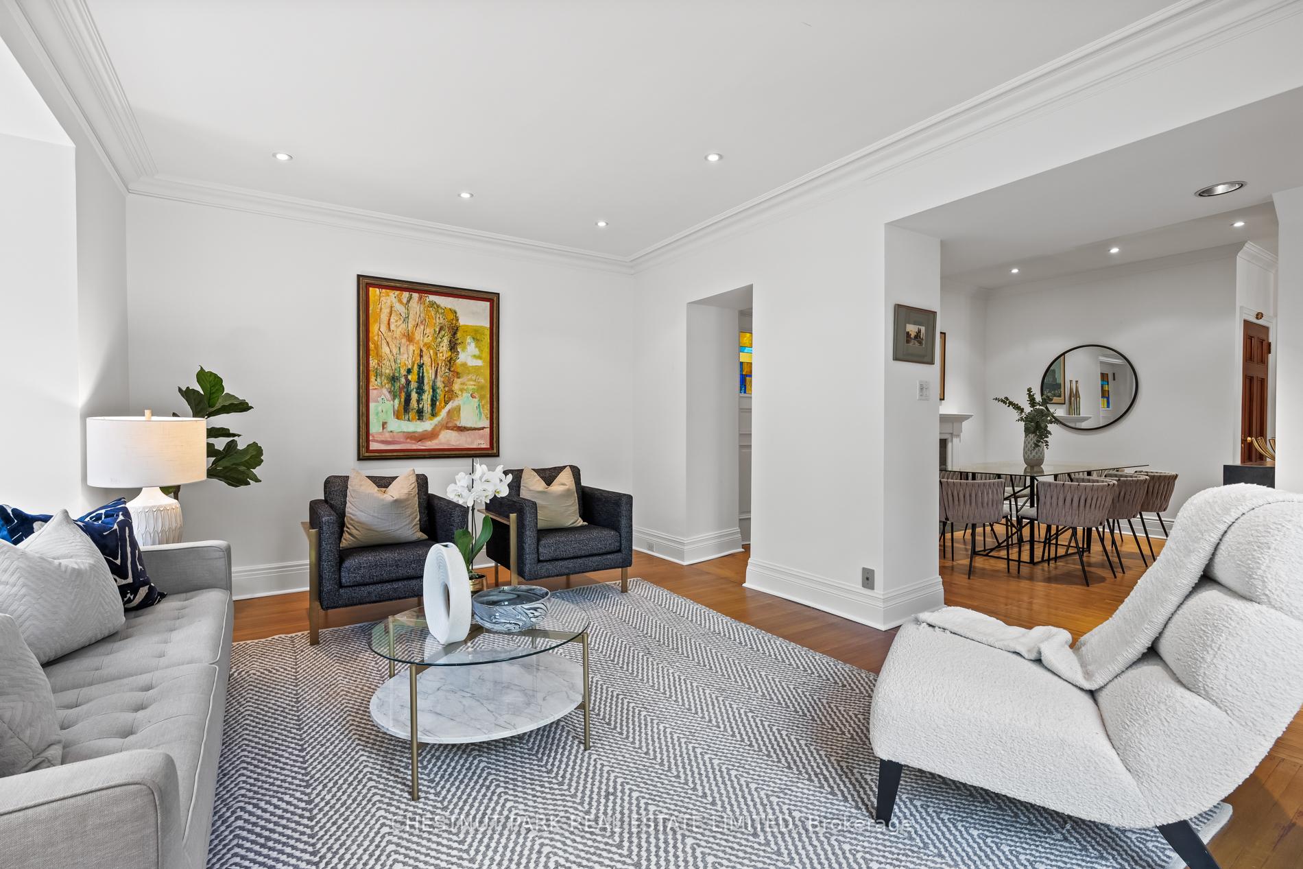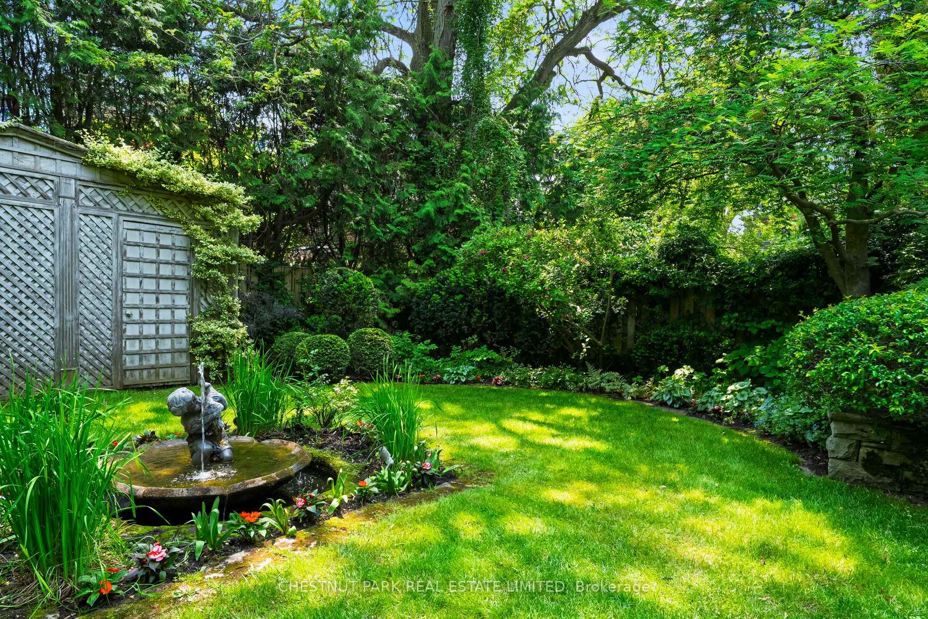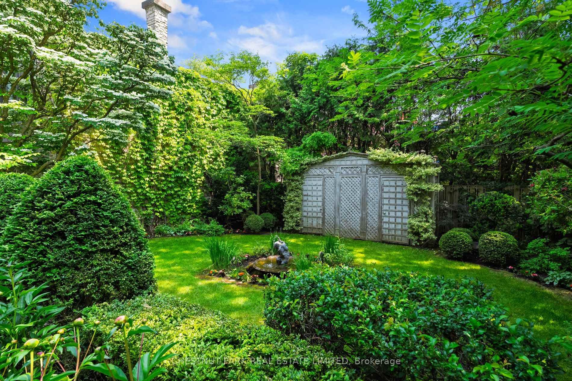 Welcome to this most iconic ivy clad stone home in prime heritage Southwest Rosedale.The original house was built circa 1905 and later had a first and second floor addition undertaken. The property enjoys a private driveway.This majestic home is set well back on its property of 45' x 100'. The property is on a south lot with a lovely outdoor terrace and steps down to a manicured English garden. The private terrace and garden enjoy a lovely water feature with a small pond. There is a charming garden shed that frames the back of the garden.On the main floor are found the kitchen and open eat in area with a box bay window and with excellent circular flow to the dining room with hardwood floors and fireplace. The living room is at the rear and overlooks the garden. There are French doors from the kitchen and the living room out to the flagstone terrace. The kitchen also enjoys pretty views of the front garden. On the main floor is a powder room. For the romantics there is a covered front porch with ionic columns and a built-in swing overlooking the front of the property. On the second floor is the large family room with south exposure and lush treed views. On the second floor is the primary bedroom with a sitting area and a 3-piece bathroom. There is a large walk-in closet opposite to the primary bedroom. In addition, there is another three-piece bathroom on the second floor with a free-standing bathtub. On the third floor are two bedrooms both overlooking the rear garden. There is excellent ceiling height in both bedrooms. From the east bedroom there is access to the rooftop that could be used as a terrace.The lower-level laundry room has a one-piece bathroom with a laundry sink, furnace and storage area.Nearby, are fabulous restaurants, amazing specialty shops, parks, and an easy stroll to the TTC. This special offering is often admired & offers a wonderful opportunity for those seeking one of the very few stone homes in Rosedale to customize to their own liking.