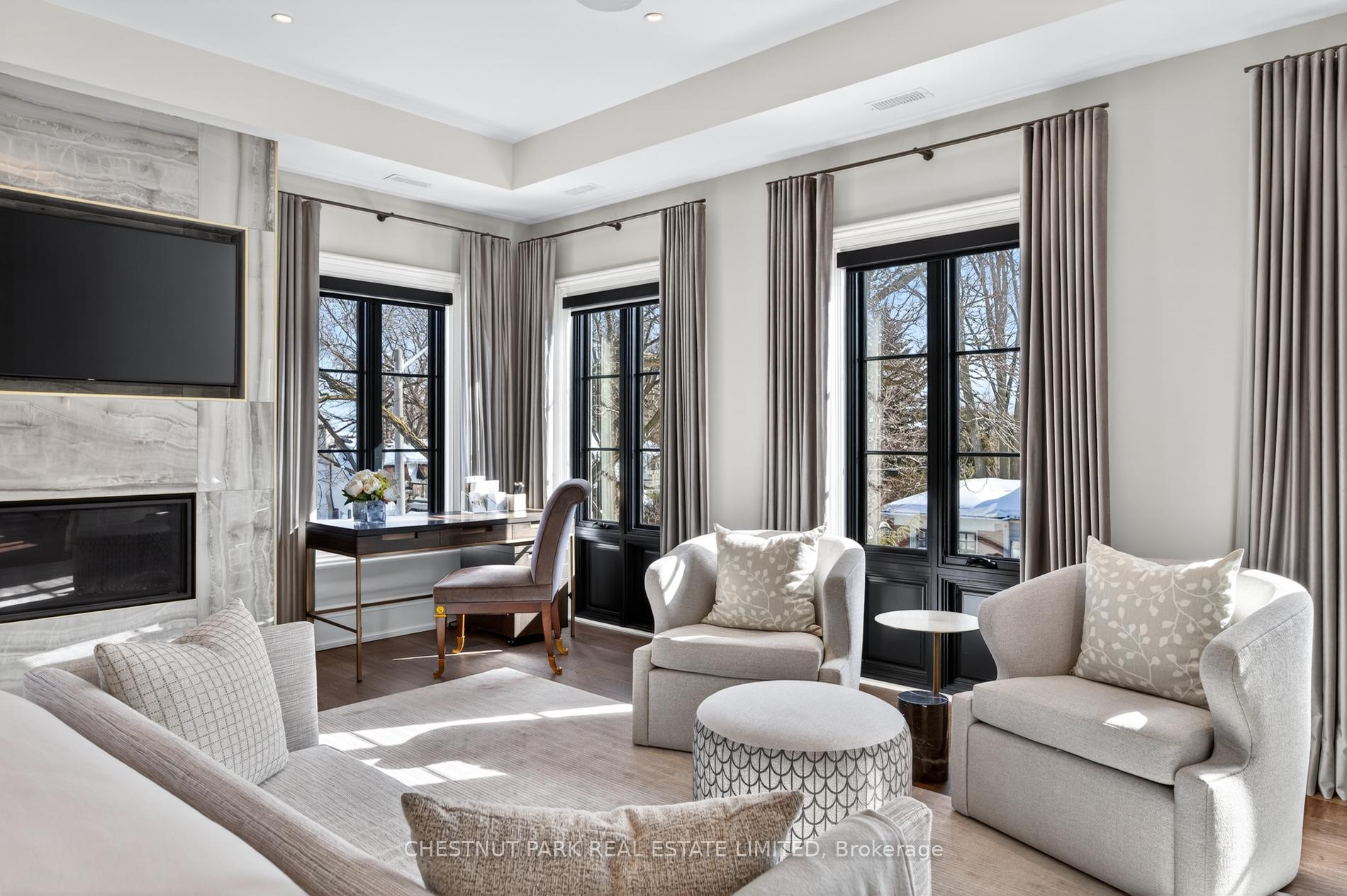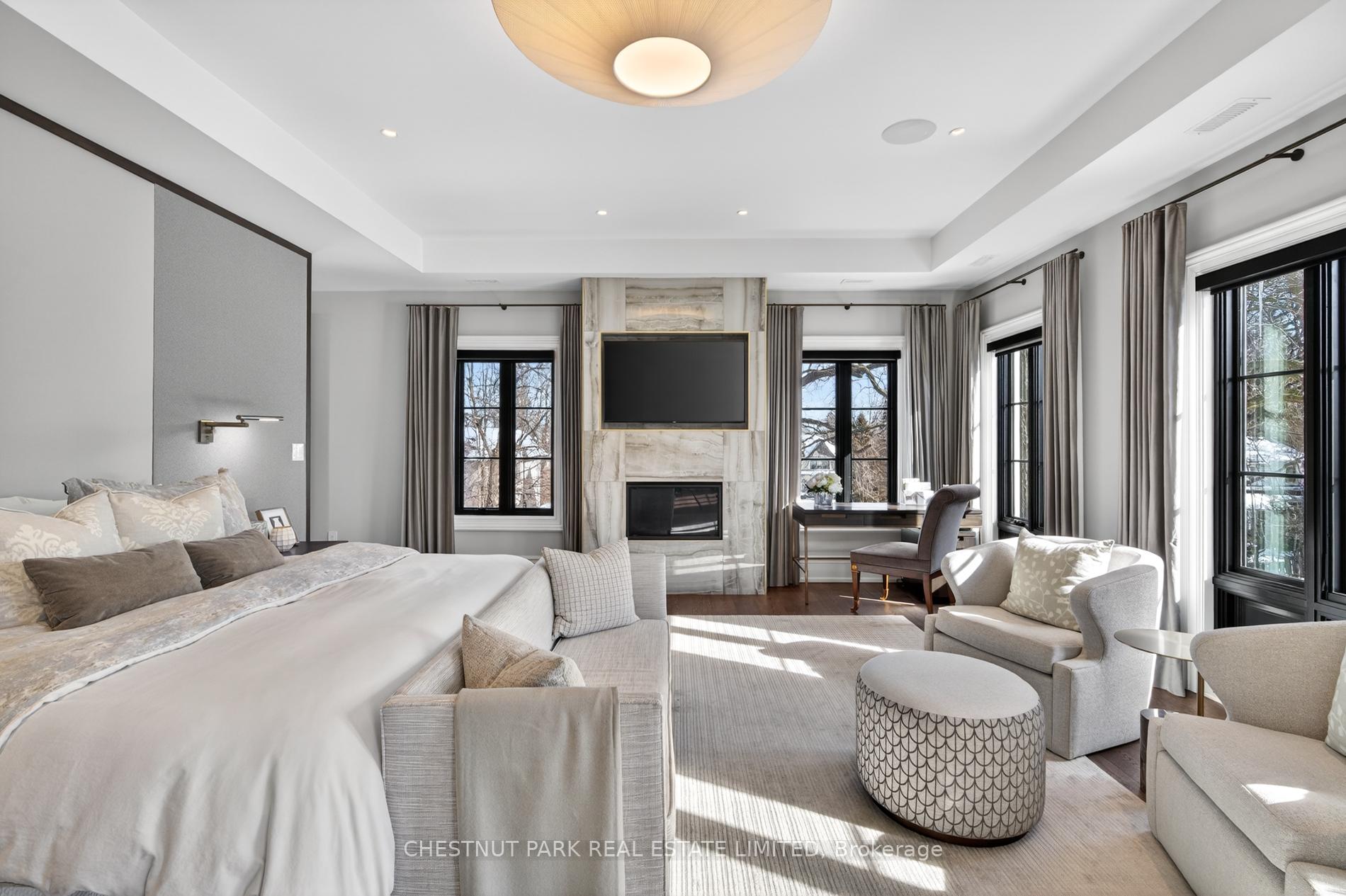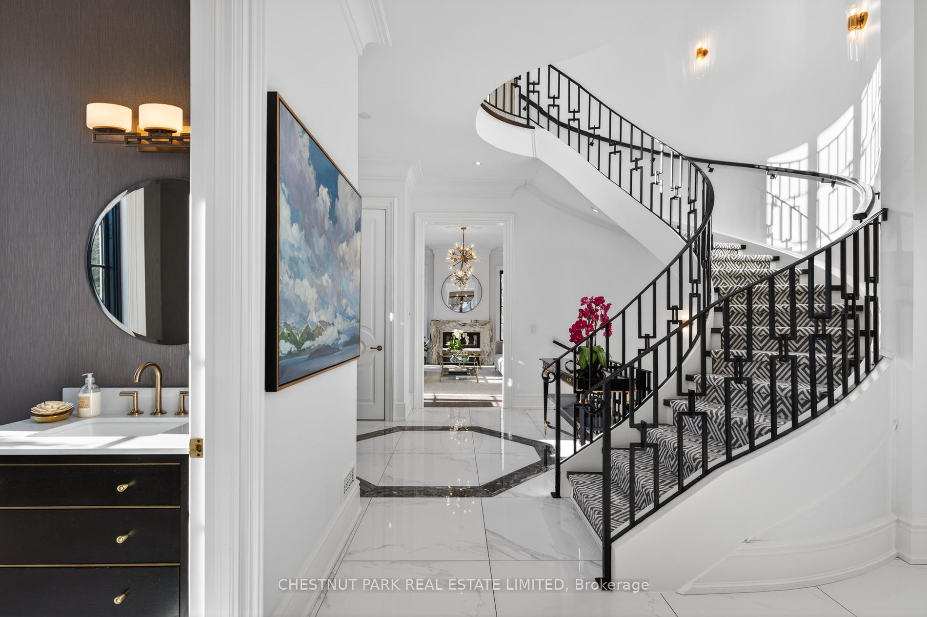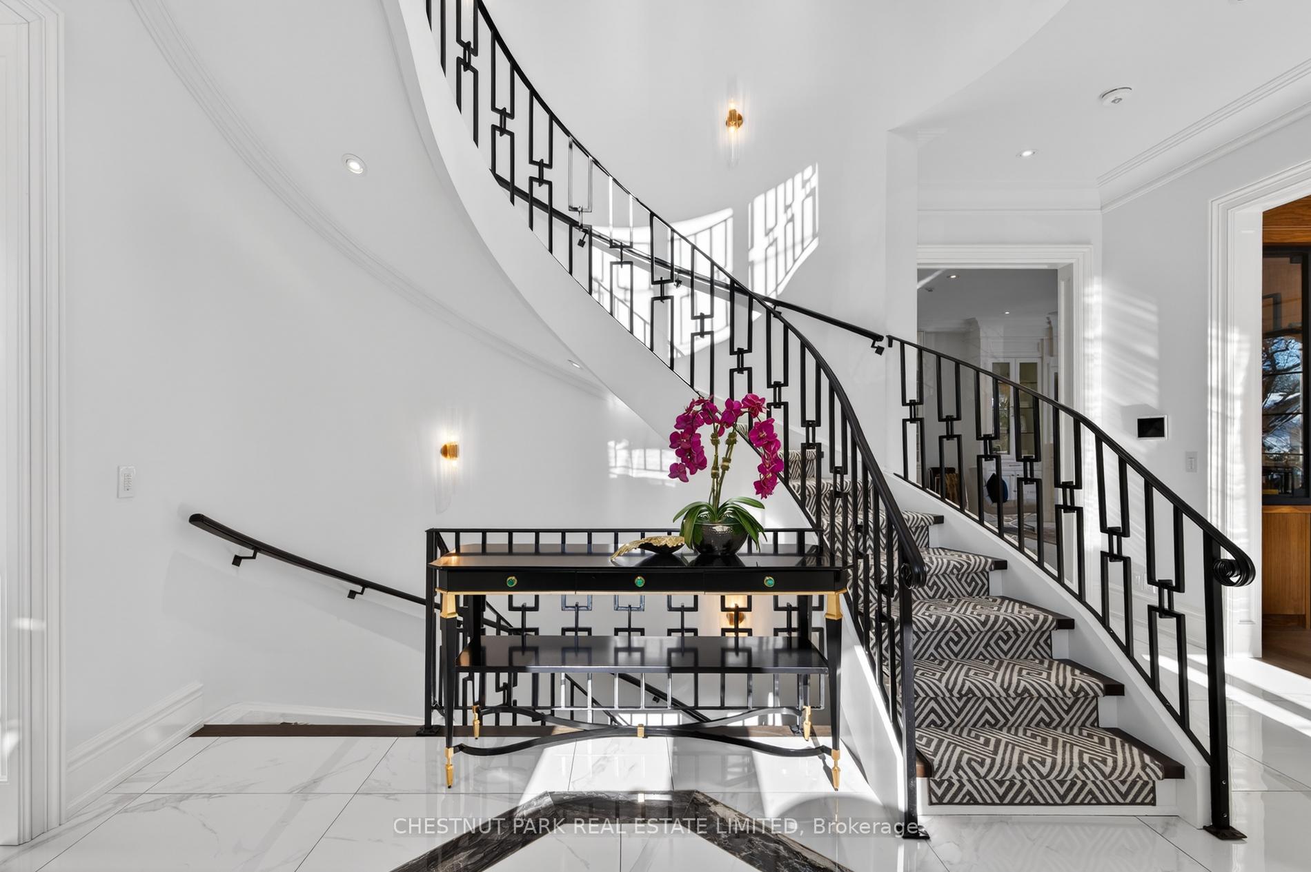 Wow... show stopper alert. The best of the Cricket Club on a coveted corner lot, where classic architecture meets modern refinement, this striking contemporary Georgian style family home makes an unforgettable first impression. Symmetrical lines are timeless proportions give way to light infused interiors that feel both grand & inviting, designed for elevated everyday living. Inside, a dramatic, elegant foyer welcomes you, featuring a sweeping spiral staircase that immediately sets the tone for the home's refined style. Soaring 10-foot ceilings and carefully chosen finishes continue throughout. The living room feels sophisticated yet welcoming, anchored by a gas fireplace and framed with custom cabinetry. The dining room makes a statement with a temperature-controlled wine wall, combining style and function for effortless entertaining. Upstairs, the primary suite is a private sanctuary, complete with its own gas fireplace and a lavish six-piece ensuite designed for spa-like indulgence. Additional bedrooms are generously proportioned, & a second-floor laundry adds everyday convenience. The lower level is a true lifestyle retreat. A private theatre features six theatre-style chairs, perfect for family movie nights or watching the big game in style. The glassed-in gym offers both privacy and visibility, creating an inspiring space to work out. This level also includes a nanny suite w/ its own bathroom, a powder room, & a second laundry room for ultimate convenience. Beyond, the expansive recreation space flows seamlessly to the outdoors, where a resort-style private pool creates a serene backyard escape. The result is a residence that feels both stately and livable - a seamless blend of classic presence and modern comfort. One of the great features of this Cricket Club gem is the close proximity to both Yonge Street & 401. Many of the top-tier public & private schools are a short commute, as is Pearson for the frequent travellers and HWY 400 for cottage & countryside.