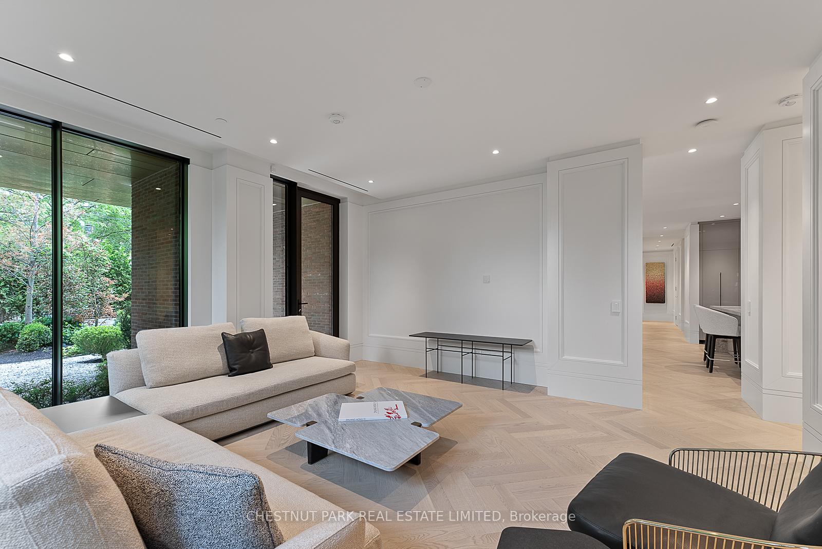 Welcome to 7 Dale, an exquisite boutique residence by Siamak Hariri and Studio Munge, exemplifying quiet luxury in every thoughtful detail. This fabulous one-of-a-kind apartment offers all the livability, private outdoor space and design aesthetic of a midcentury bungalow, set in a newly completed condominium in the heart of Rosedale! Collect art and appreciate great design. A gallery style entrance with large art walls creates a dramatic and memorable first impression and leads to an open concept great room perfect for hosting family gatherings, holiday entertaining or simply relaxing in. Enjoy cooking... You will fall in love with the sleek DaDa chef's kitchen featuring huge central island & 9-piece Gaggenau appliance package with both gas and induction options. Adore nature? Massive floor-to-ceiling glass panels with walkouts from every room frame the changing seasons of your own private outdoor space. The generous dining/seating terrace is sheltered from rain by a bronze canopy and surrounded by lush layers of beautifully manicured gardens. Value privacy... The split bedroom layout allows for maximum separation of space while a corner family room offers an alternative retreat off the great room, ideal for reading or watching films. Enjoy the ease and convenience of main floor accessibility with 24 hour concierge services just down the hall and potential for a direct private gated access to Dale Avenue (perfect for morning runs or walking the dogs!) Downstairs, a sumptuous spa and fitness club await, fitted with Pent, Peleton and Tonal equipment. A home suited for year round enjoyment or lock and leave to travel at a moment's notice with complete security and peace of mind assured. Mere minutes to the city's finest shopping and dining venues, yet feels like an exclusive retreat a world away from the urban bustle. This is a rare opportunity to enjoy a lifestyle without compromise, combining the unique features of a home with all of the benefits of a condominium.