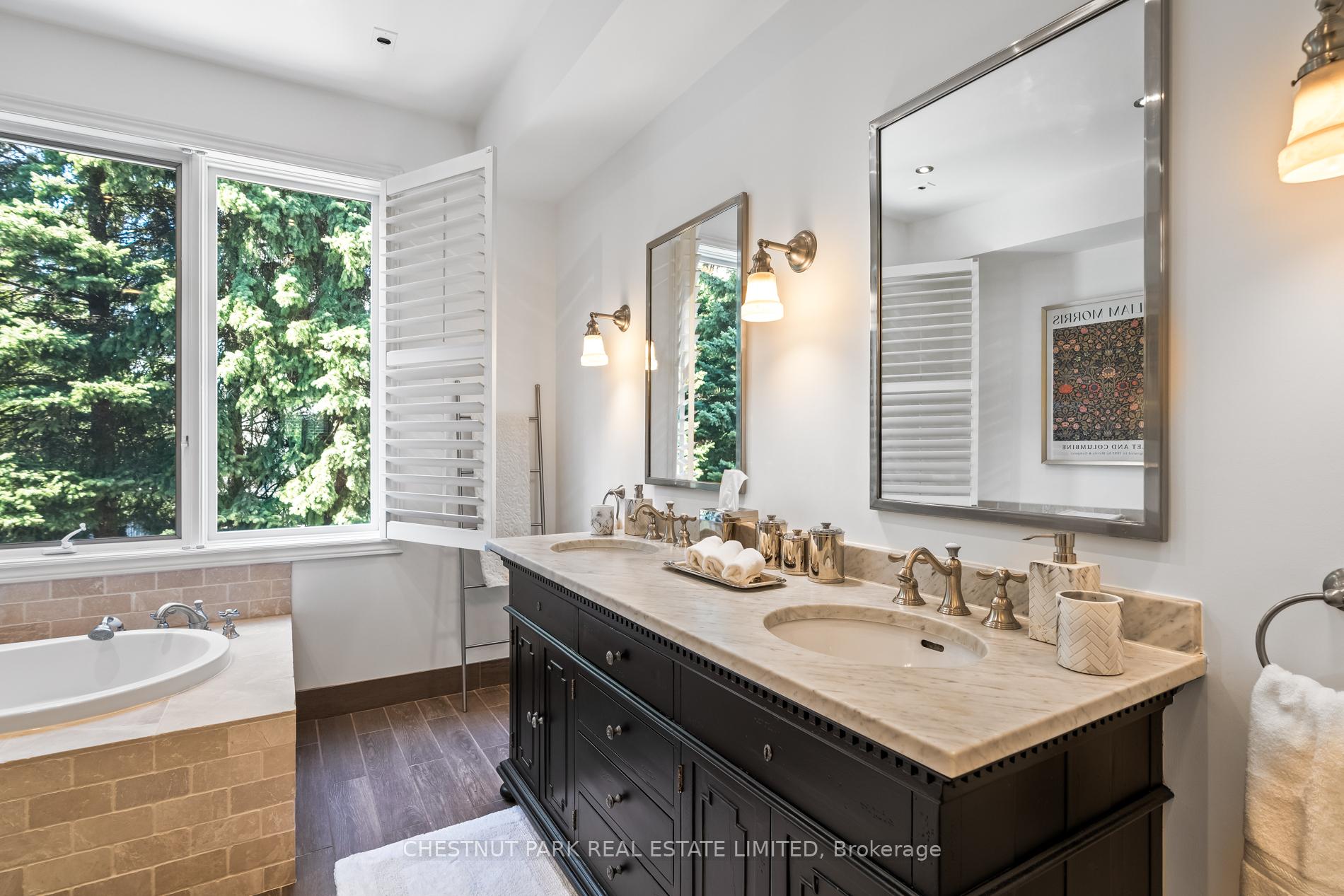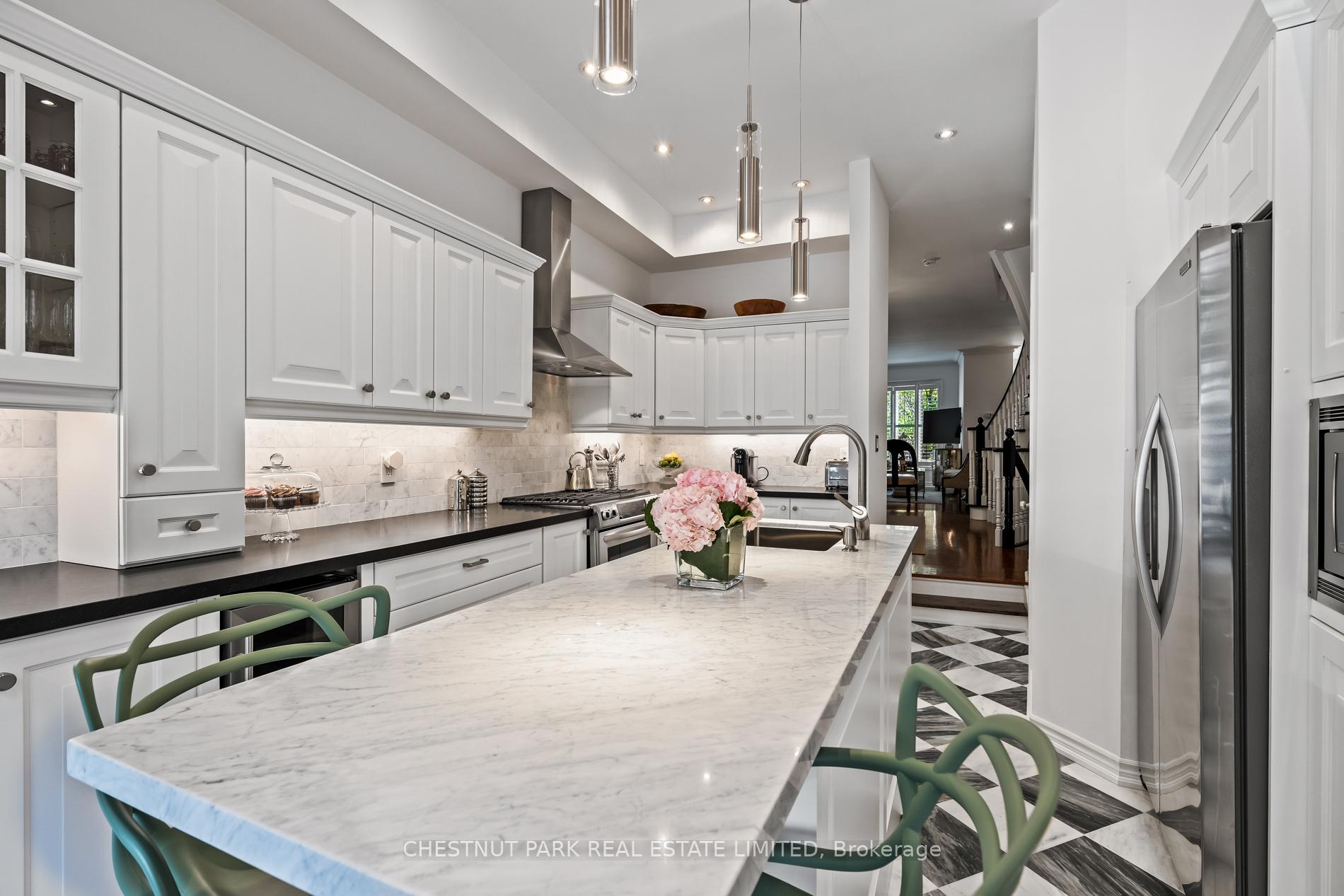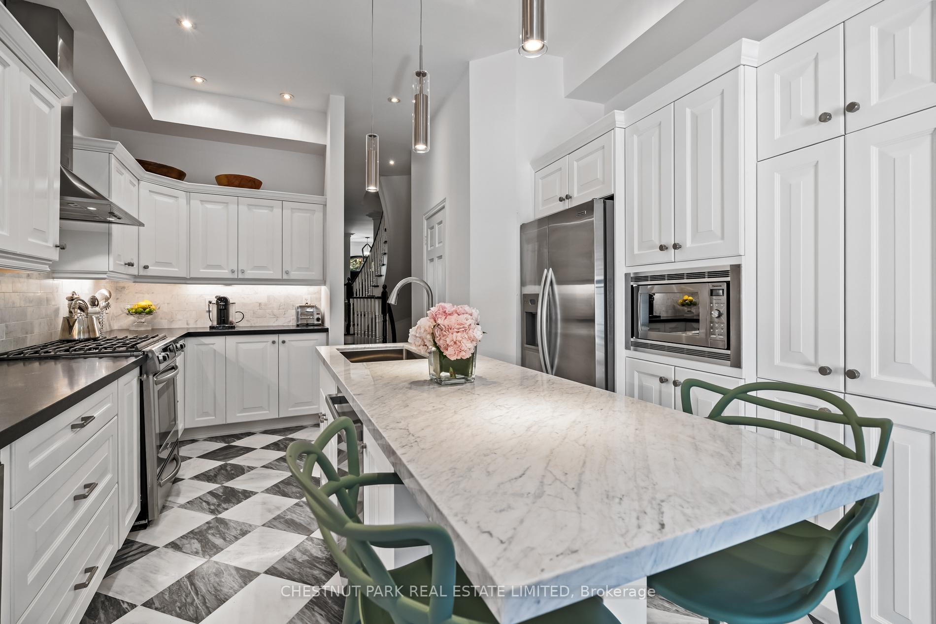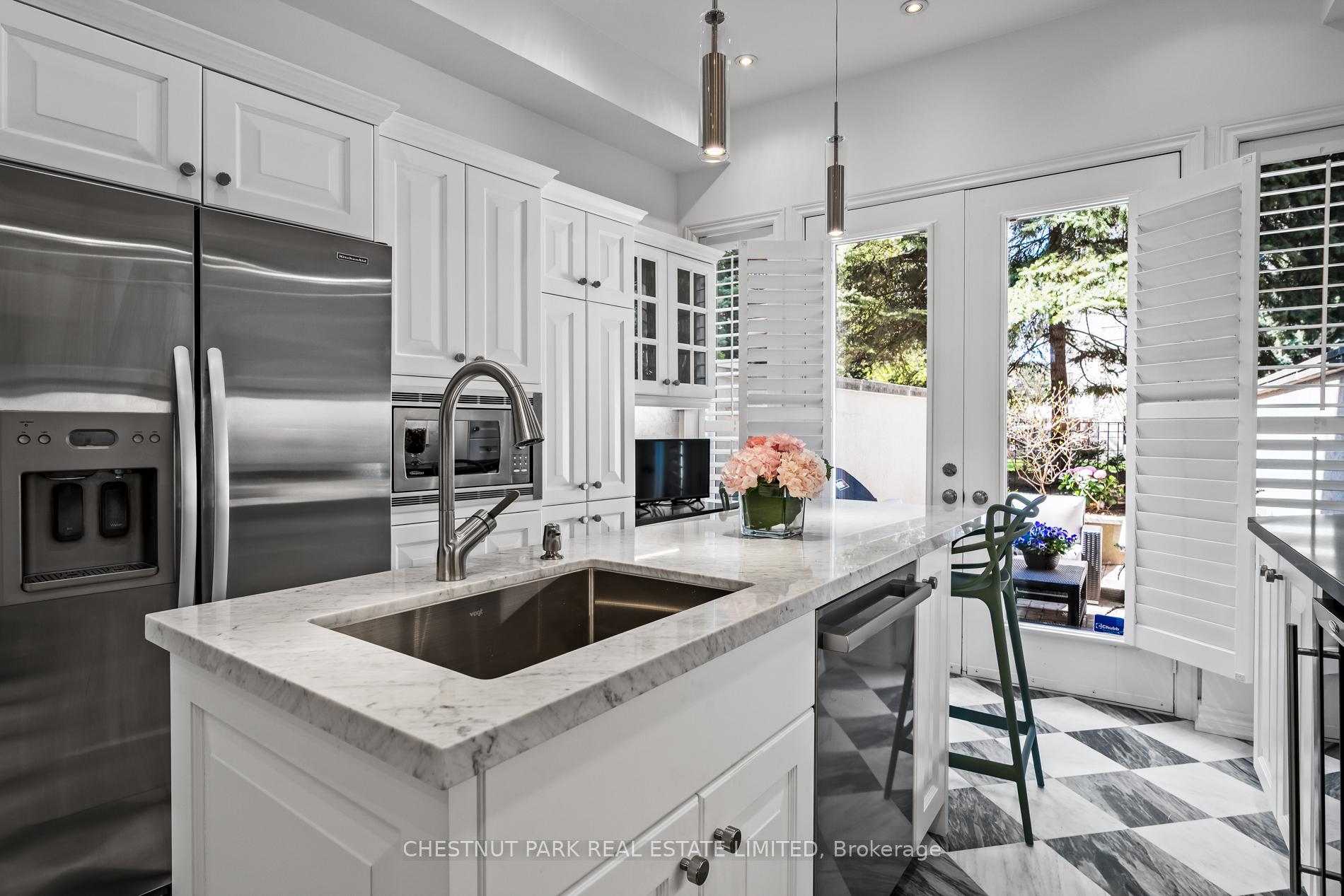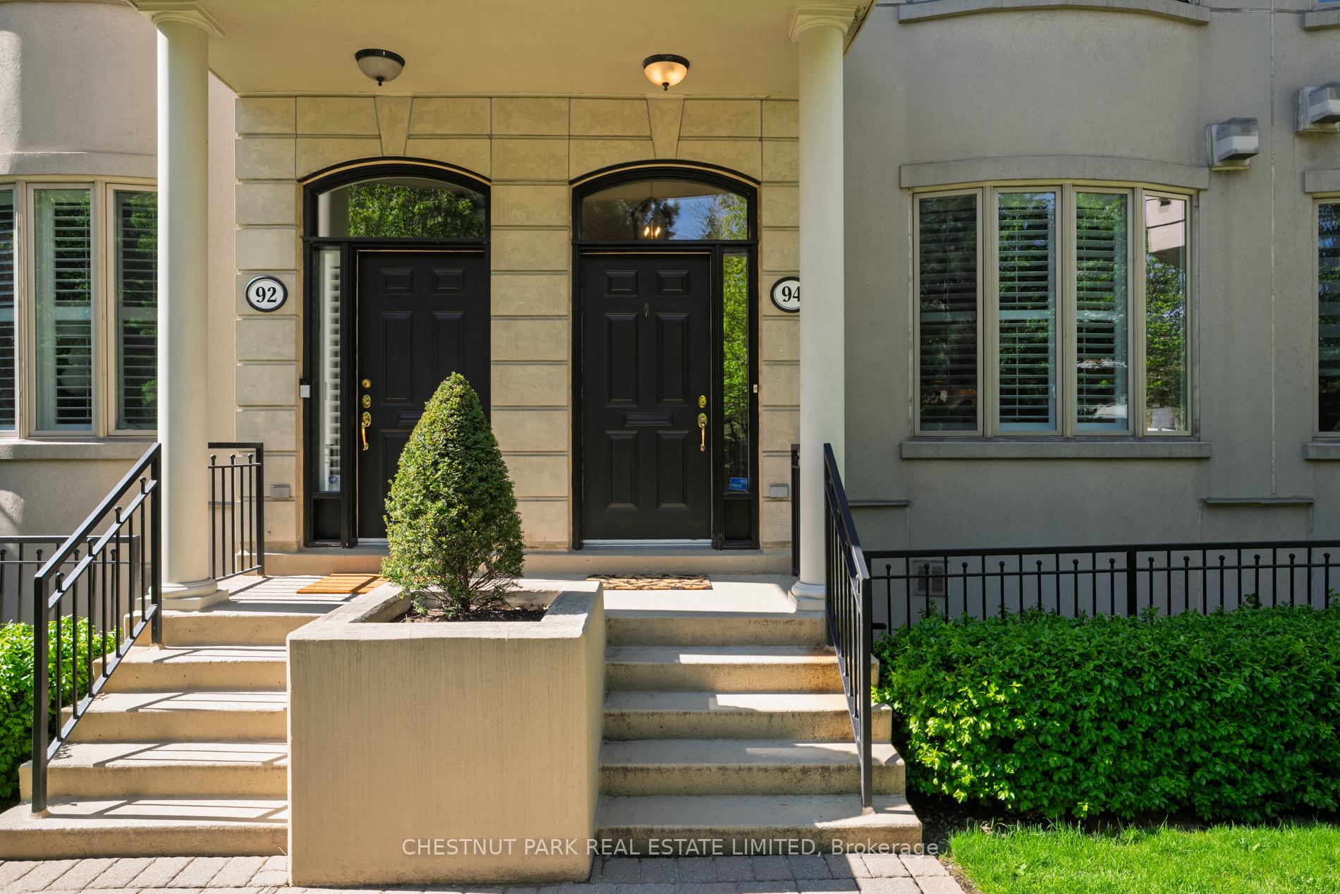 New York style in Toronto - Welcome to 94 Pleasant Blvd, turnkey living in one of Torontos most sought-after midtown neighbourhoods. This elegantly designed three storey townhouse offers the perfect blend of style, comfort and location. Soaring 9ft ceilings throughout offer a sense of openness not found in many townhouses. Step inside the graceful foyer to the open layout featuring hardwood floors that course into new marble kitchen floors accentuating the homes refined aesthetic. The main level features a spacious living and dining area separated by a chic gas fireplace. The updated kitchen with new marble countertop and floors flows effortlessly into a private back garden terrace-a perfect urban oasis. Upstairs you will find three generously sized bedrooms, including a serene primary retreat with six-piece ensuite offering both function and sophistication as well as a steam shower. The third floor features two expansive bedrooms with shared four-piece bathroom. The surprise feature is the dapper lower-level family room with direct access to two car garage parking. The entrance from the lower level also functions as a mud room. Enjoy unparalleled walkability to fine dining and boutique retail, grocery stores and the serene paths of David Balfour Park. With 24-hour concierge, this home offers all the convenience of condo living with the space and privacy of a townhouse. Whether downsizing or upgrading or simply seeking a turnkey lifestyle in a prime location, this home is the complete package.